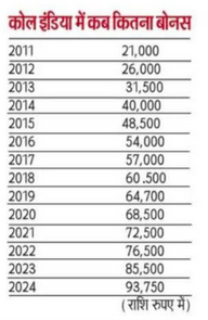 COAL INDIA LTD NON-EXECUTIVE BONUS HISTORY
