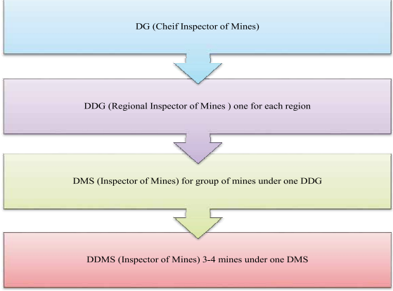 The Directorate General of Mine Safety (DGMS) is vested with the responsibility to ensure compliance of provisions under the Mines Act, 1952 and Rules & Regulations made there under for improvement in standard of safety in mines. The structure of DGMS is as follows: